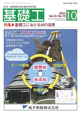 2025年10月号特 集 基礎工におけるAIの活用 総括編集 岩﨑 公俊 委員 ![]() |